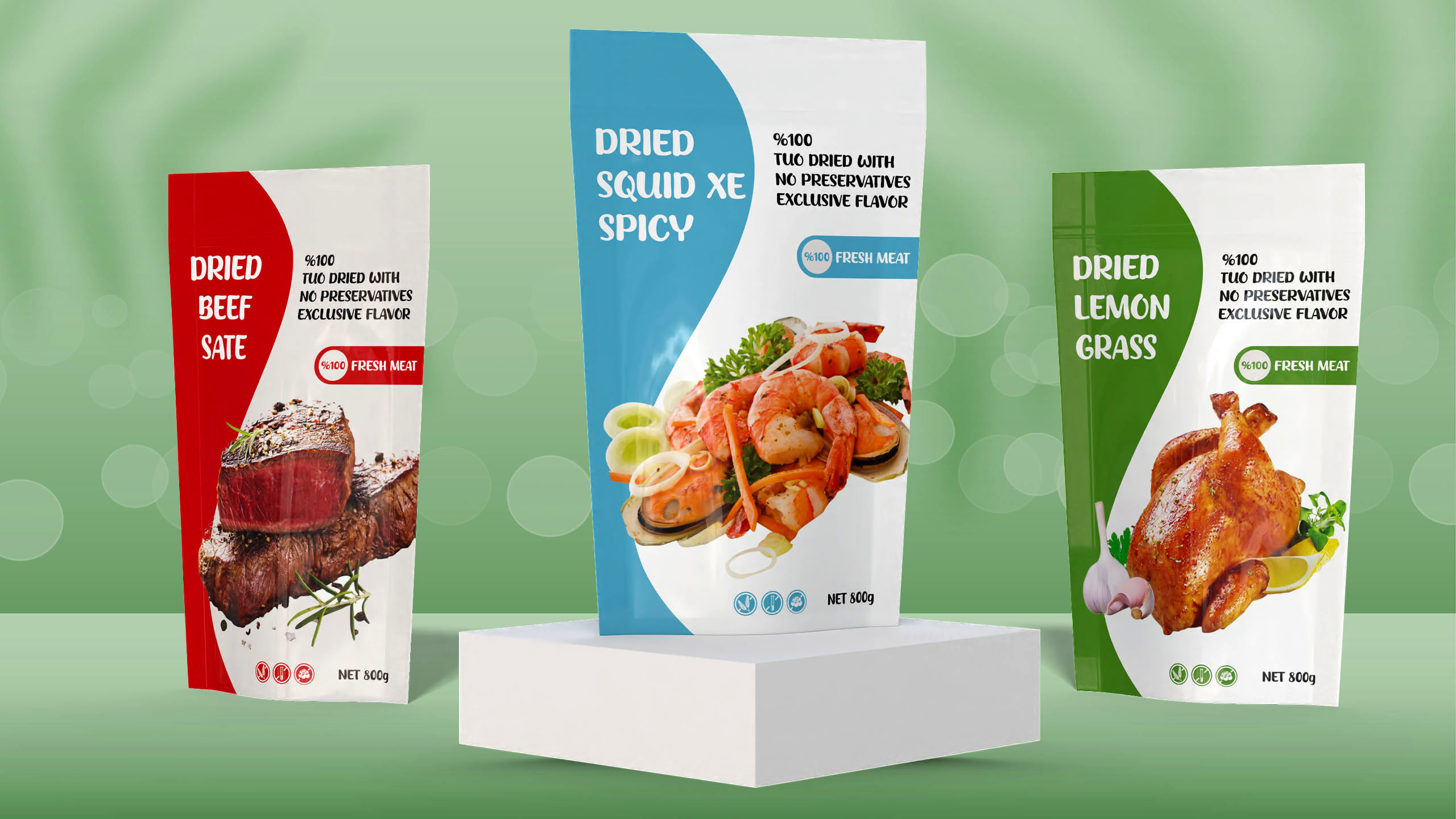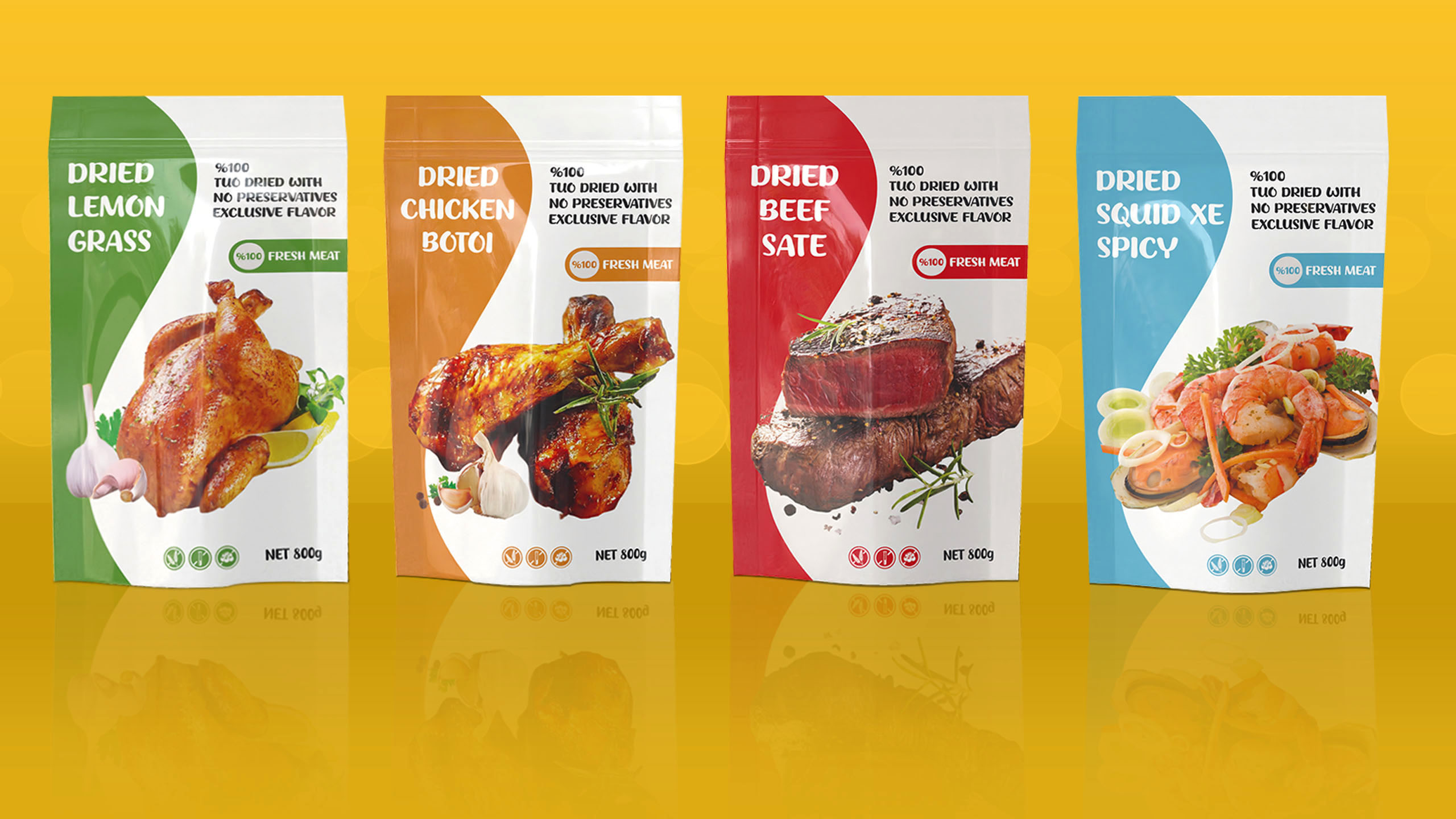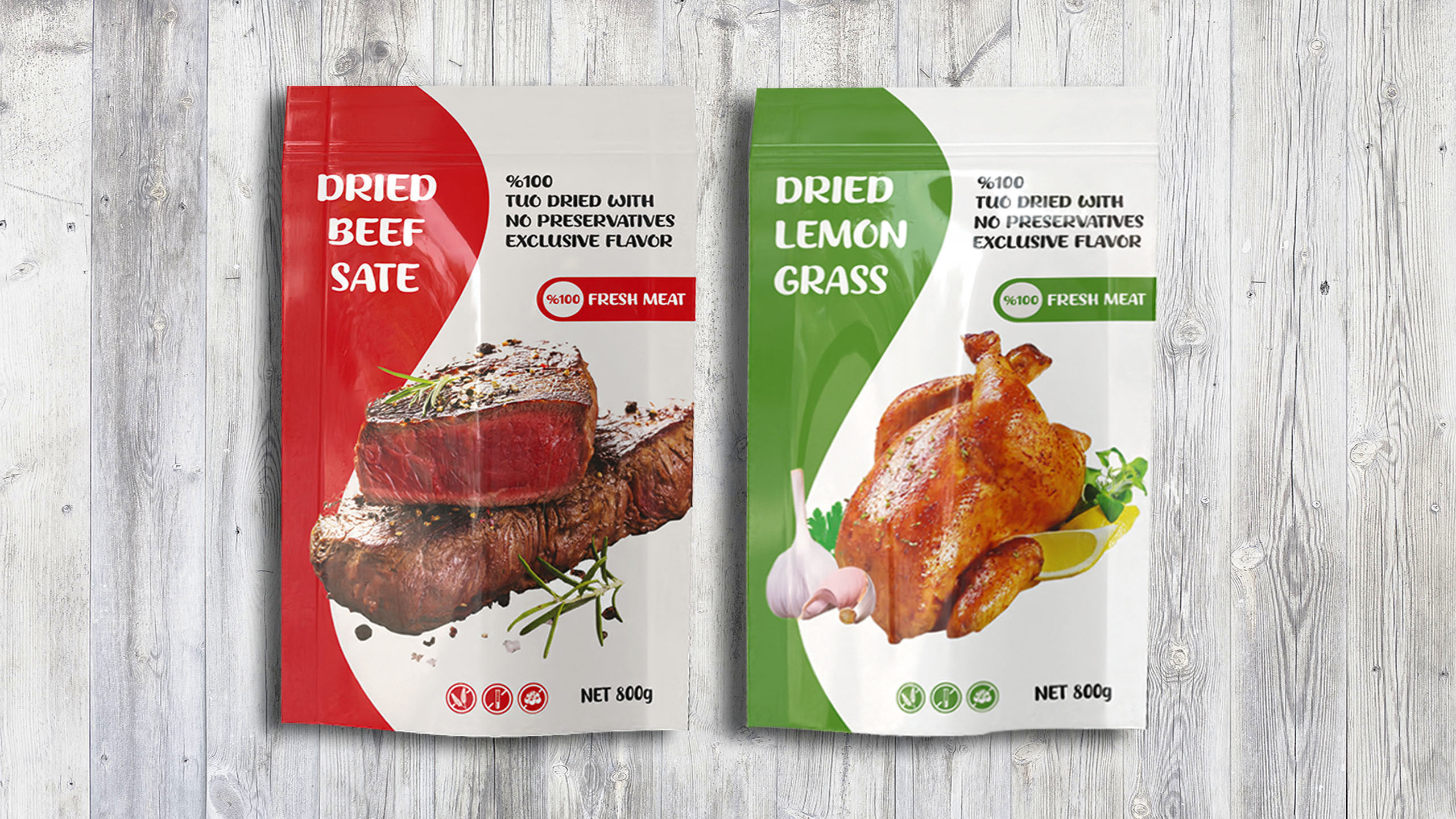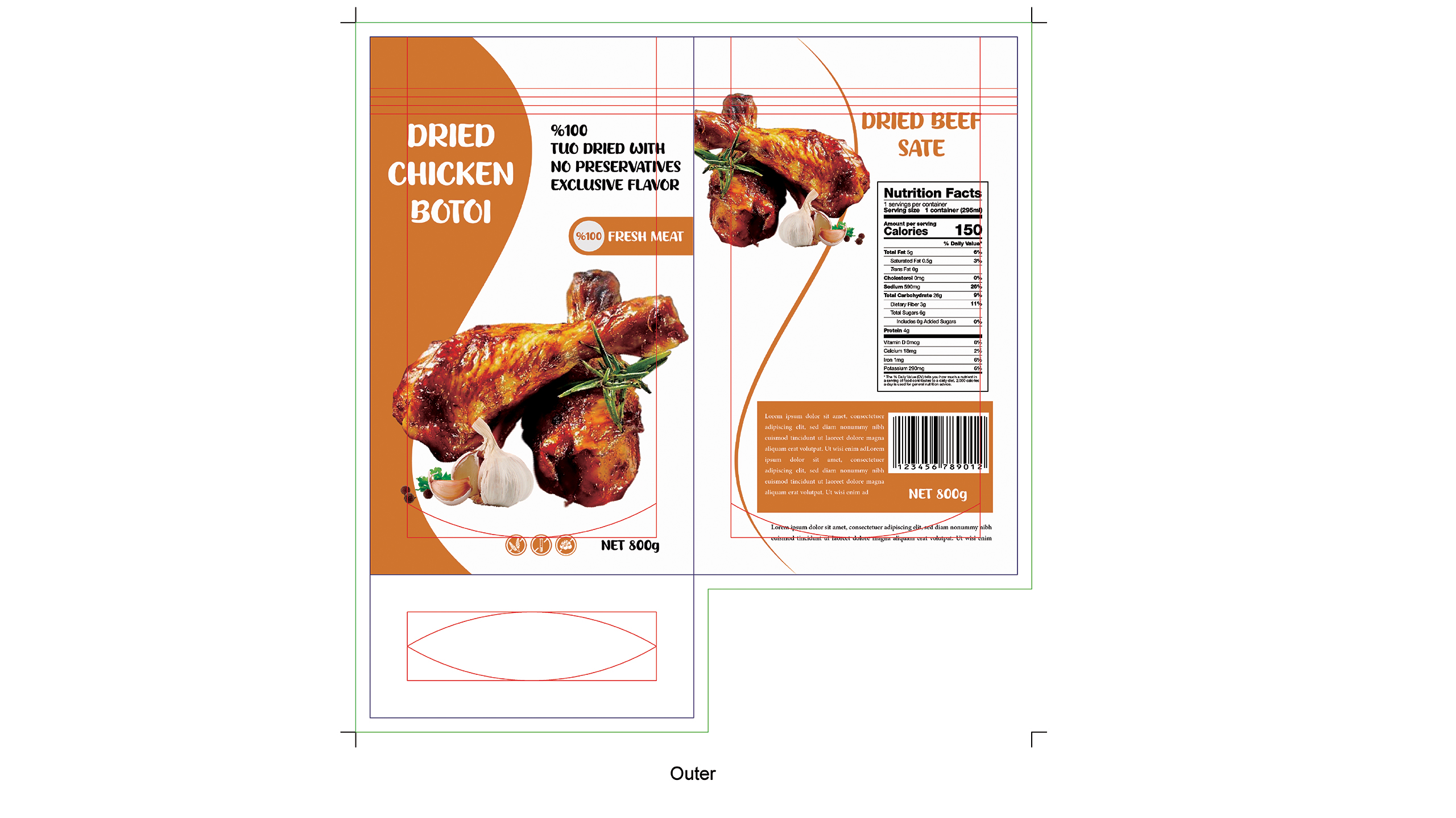 Dried beaf, chicken.